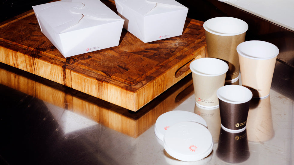 Återvinningsbara pappersmuggar, lock och sugrör. Helt fria från plast och finns i flera storlekar. Passar perfekt för både varma och kalla drycker.