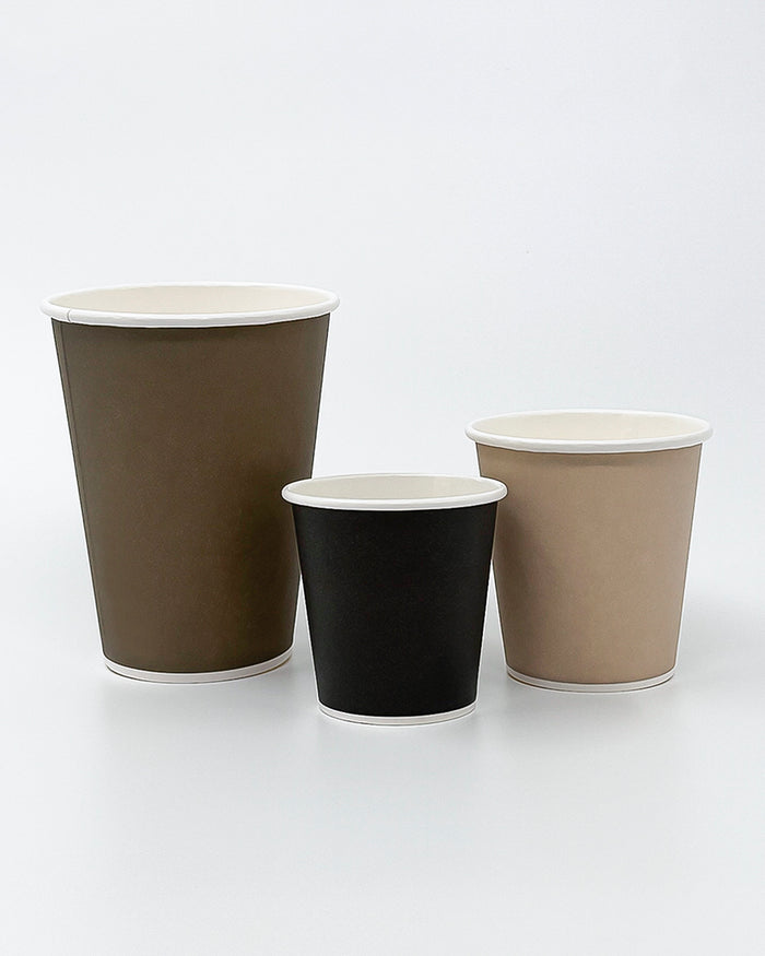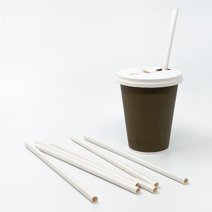 Recyclable paper cups, lids, and straws. Plastic-free and available in multiple sizes. Suitable for both hot and cold drinks.