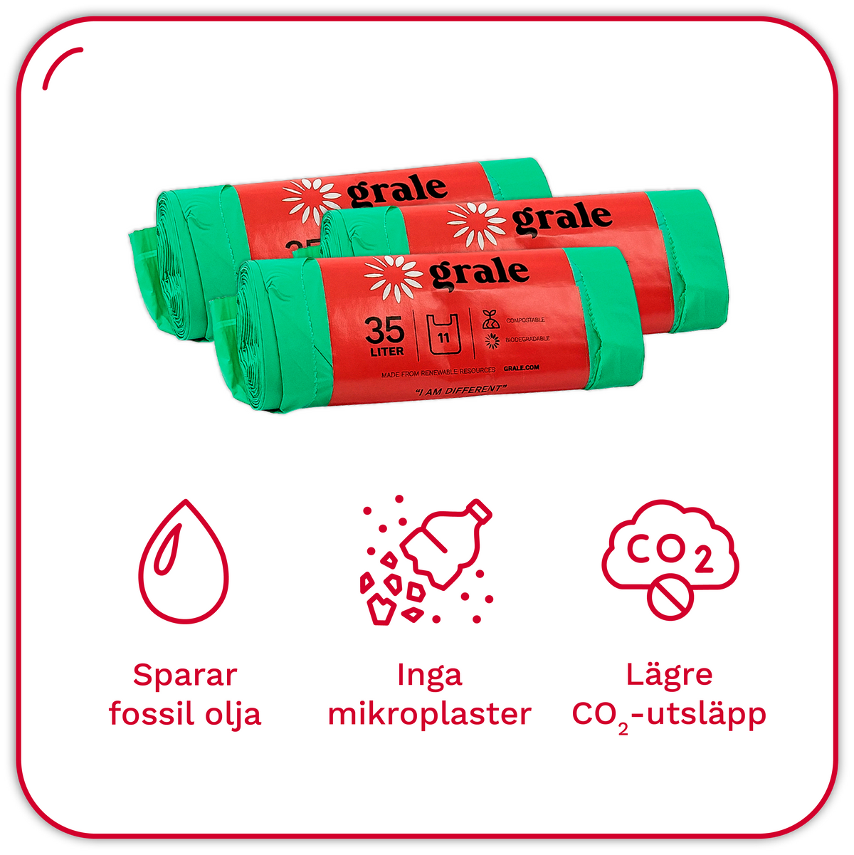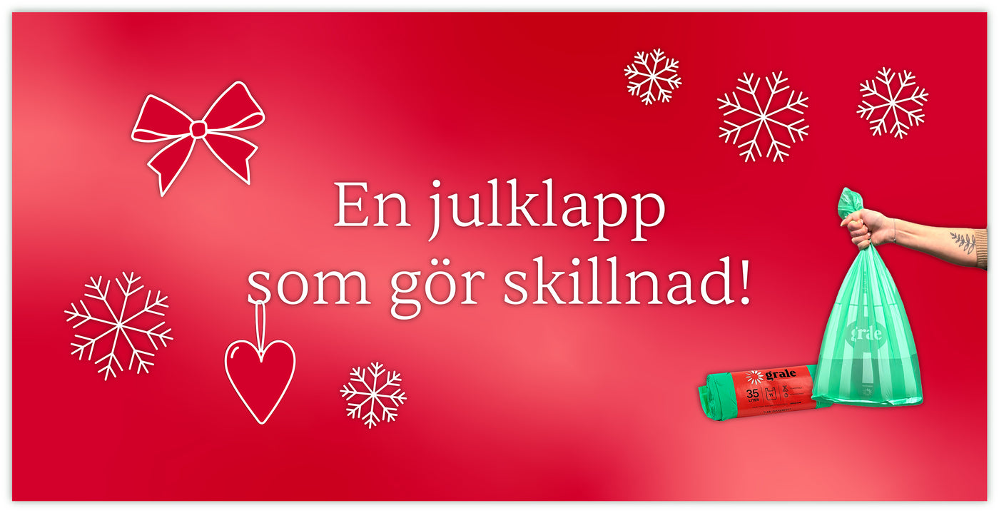Många julgåvor används inte eller glöms bort. Våra komposterbara avfallspåsar gör motsatsen. Med Grales påsar får varje medarbetare möjlighet att minska sin egen plastanvändning hemma på ett enkelt sätt.